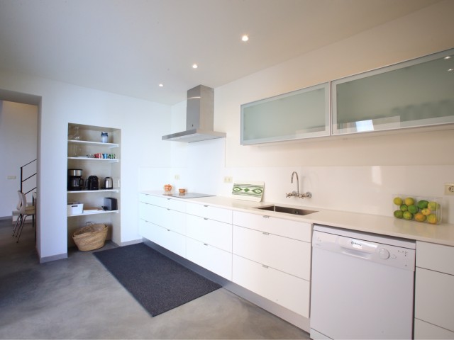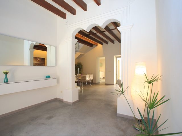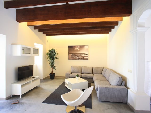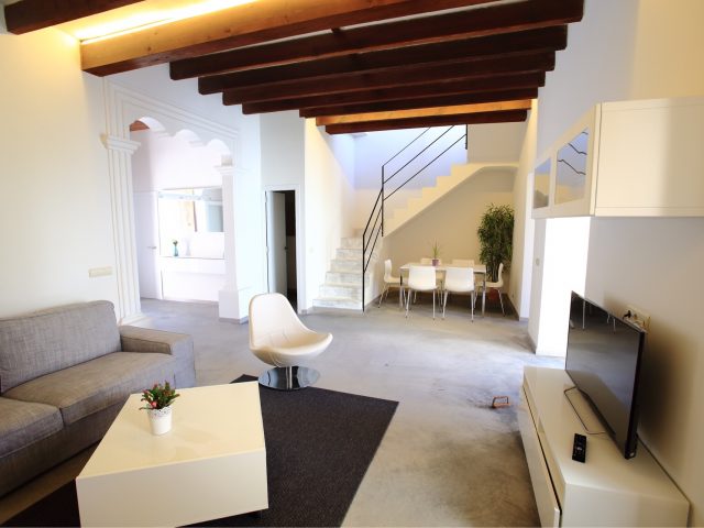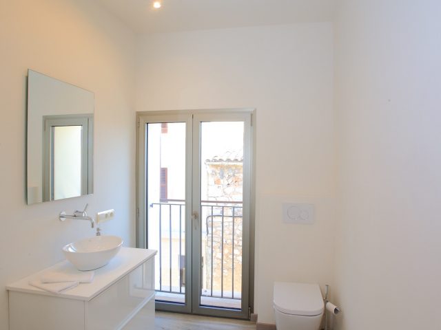In diesem frisch renovierten urtypischen Dorfhaus wird modernstes Design mit Tradition perfekt vereint. Es wurde 2015 mit viel Liebe zum Detail komplett modern umgebaut, ohne das der ursprüngliche Charme von Can Garbeta verloren ging. Durch den hellen großzügigen Flur kommend lädt es in den offenen Wohn- Essbereich ein. Durch die hohen Decken mit Fachwerkbalken sowie den großen Fensterfronten strömt sehr viel Tageslicht ins Innere. Dazu kommen die fließenden Übergänge in die einzelnen Funktionsbereiche, die dem Ganzen einen warmen Loftcharakter geben. Der Wohn- Essbereich ist mit einer bequemen Sofaecke mit Sat-TV ausgestattet. Für die Gemütlichkeit und Wärme in kälteren Nächten sorgt der Palet-Ofen, vor dem man mit einem guten Glas Wein den Abend ausklingen lassen kann. An dem Esstisch lässt es sich bequem und in familiärer Runde speisen. Die angrenzende offene Küche ist komplett und absolut modern mit Spülmaschine, Induktionskochfeld, Backofen, Mikrowelle, Kaffeemaschine etc. ausgestattet. Durch die Größe der Arbeitsfläche und die Weitläufigkeit macht das gemeinsame Kochen hier besonders viel Spaß!